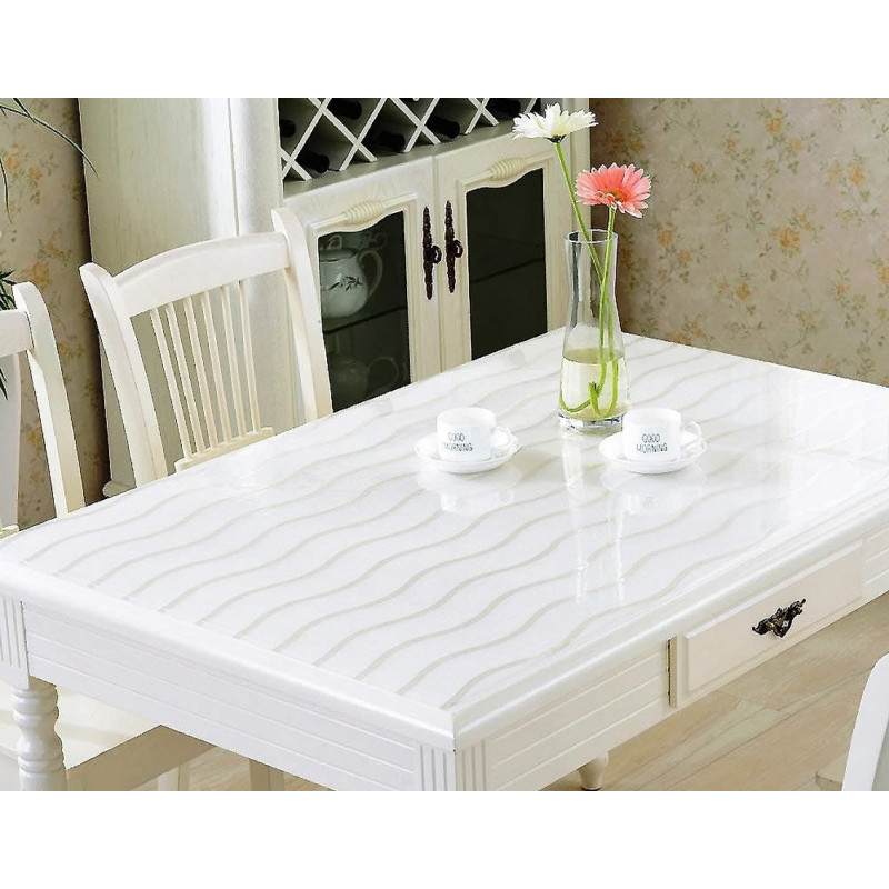 Клеенка мягкое стекло – это тонкое, гладкое, прозрачное, настольное покрытие. Клеёнка изготавливается из прозрачной плёнки, произведенной на основе поливинилхлорида (ПВХ). Клеенка скатерть имеет блестящую ламинированную поверхность и надёжно защищает стол от любых повреждений.