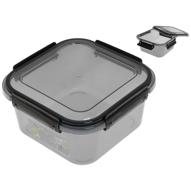 Контейнер черный прозрачный 1,43л с герметичной крышкой, квадратной формы, изготовлен из высококачественной пищевой пластмассы, которая может контактировать с пищей, абсолютно безопасна для здоровья, не содержит вредных веществ, не впитывает посторонние запахи и не имеет своего. Емкость для продуктов предназначена для хранения и транспортировки свежих и замороженных продуктов, ягод, фруктов, овощей, а также удобно использовать для разогрева пищи в микроволновой печи. Боксы контейнеры из пищевого пластика с защелками незаменимы для тех, кто любит отдыхать на природе. Емкость комплектуется крышкой, которая плотно закрывается, это препятствует случайному открытию крышки.