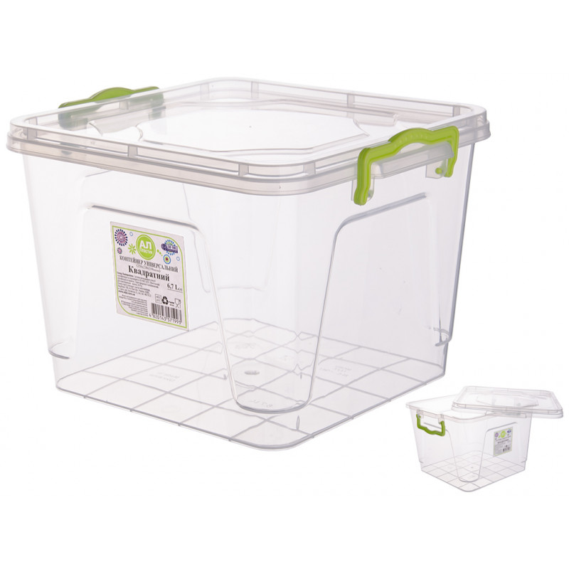 Бокс контейнер пластмассовый квадратный 6,7л универсальный, пищевой с ручками защелками предназначен для хранения, транспортировки продуктов или готовых блюд и их заморозки или разогрева, а также может использоваться для хранения детских игрушек и других необходимых мелочей домашнего использования. Емкость квадратной формы комплектуется крышкой, которая плотно закрывается и дополнительно фиксируется ручками контейнера с двух сторон, это препятствует случайному открытию крышки. Прозрачные стенки судочка позволяют видеть содержимое в нем. Бокс изготовлен из высококачественного, пищевого пластика, который может контактировать с пищей, абсолютно безопасный для здоровья, не содержит вредных веществ. Судочек пищевой с ручками защелками подходит для использования в посудомоечной машине, в холодильнике, в морозильной камере, микроволновой печи.