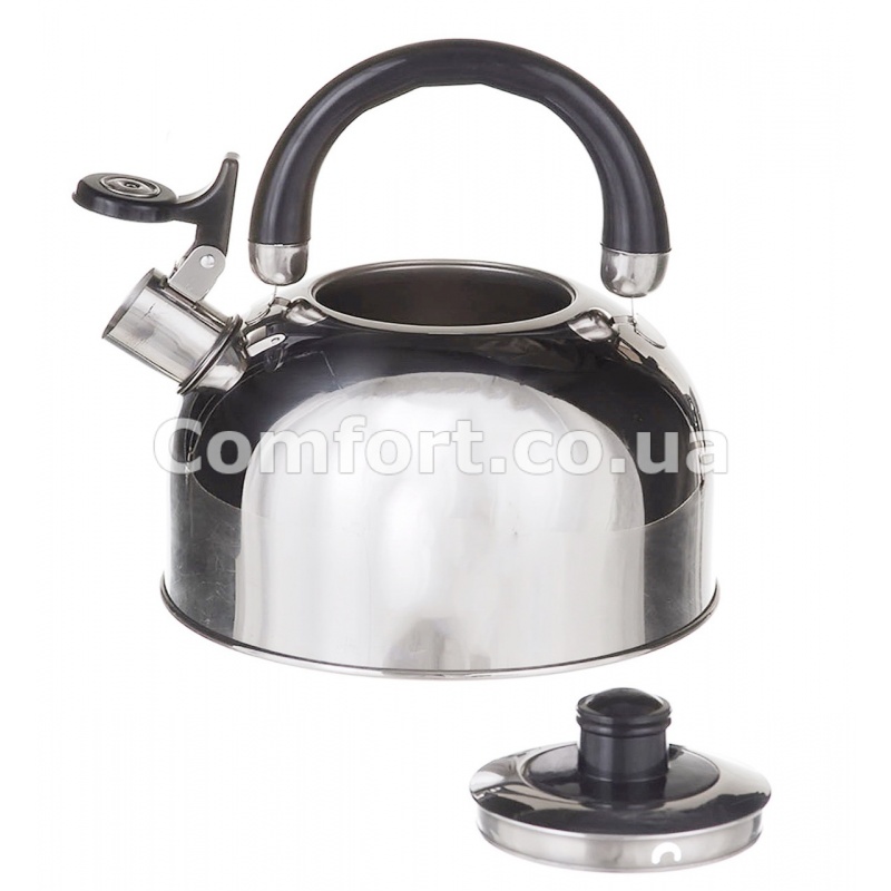 Чайник из нержавеющей стали, красивый и практичный необходим на каждой кухне, он встречает Вас каждое утро и за считанные минуты готовит свежий ароматный кофе или душистый чай. Благодаря своему оригинальному дизайну, чайник будет уместен в любом интерьере. Чайник изготовлен из высококачественной нержавеющей стали с зеркальной полировкой поверхности, надежного материала, который не представляет опасности для здоровья человека, обладает хорошей теплопроводностью и рассчитан на долгий срок службы. Чайник металлический со свистком отличается чрезвычайной прочностью и долговечностью, обладает высокими гигиеничными и антикоррозийными свойствами, а также не требует особого ухода и легко моется. Удобный чайник отвечает всем современным требованиям надежности и безопасности. Чайник имеет двойное дно, благодаря чему нагрев происходит равномерно и долго сохраняется. Для Вашей безопасности у чайника подвижная термоустойчивая бакелитовая ручка, что предотвращает возможность обжечься. Чайник имеет свисток, который станет незаменимым помощником и обязательно звонко напомнит о забытом кипящем чайнике. С помощью удобного механизма свисток открывается легко и безопасно. Особенностью этого чайник является большой объём, а большая ручка позволяет уверенно удерживать его двумя руками. Резервуар для воды закрывается плотно, потому вода не прольется на руки при наливании. Элегантный и практичный чайник устойчив к механическим воздействиям и высоким температурам, подходит для всех типов плит. Чайник компактный и вместительный имеет удобную форму и стильный дизайн. Чайник со свистком станет незаменимым помощником и украшением на каждой кухне, будет служить долгие годы, наполняя Ваш быт комфортом! Нержавеющий чайник в красивой заводской упаковке станет прекрасным подарком для каждой хозяюшки и выгодным приобретением в дом, а также идеально подойдет для оборудования общепита. Объем 3л.