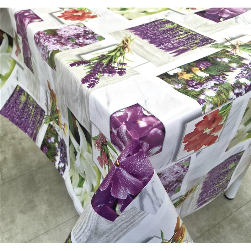 Клеенка скатерть ПВХ на нетканой основе отлично зарекомендовала себя в бытовых условиях и прекрасно подходит для использования в качестве современного и практичного настольного покрытия. Скатерть клеенка надежно защищает столешницу кухонного стола от влаги, загрязнений, механических повреждений. Столовая клеенка представляет собой нетканую основу с поливинилхлоридным (ПВХ) односторонним покрытием.