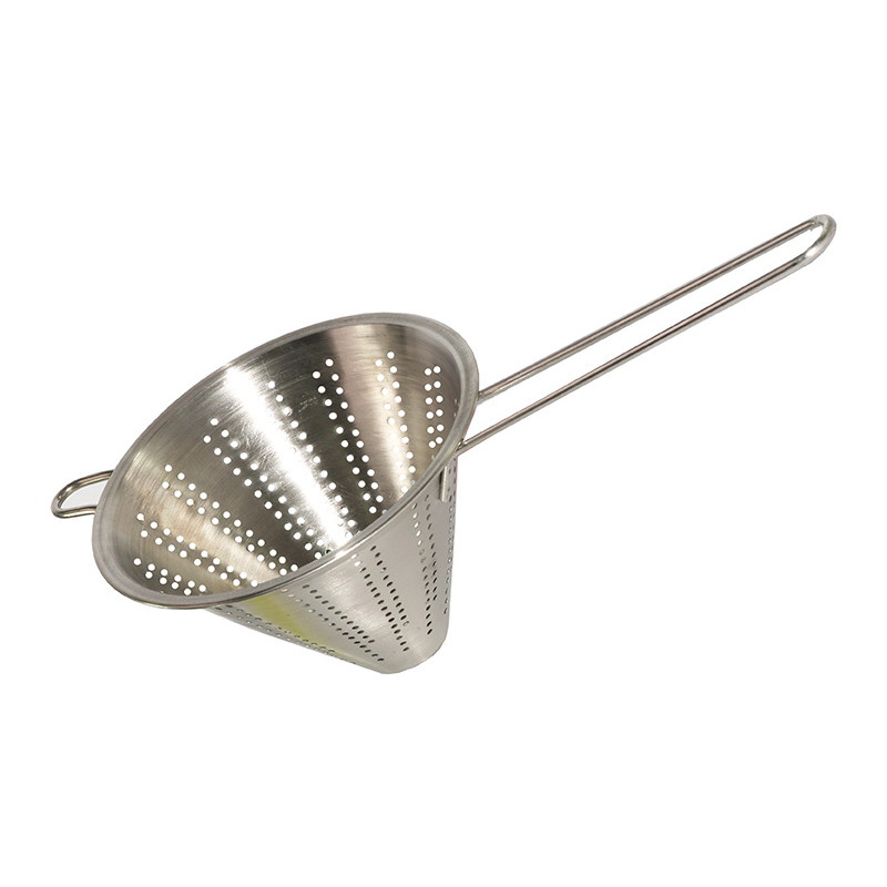 Дуршлаг с ручкой - это удобный и практичный кухонный инвентарь и незаменимый помощник на каждой кухне. Дуршлаг с длинной ручкой, в форме конуса, применяется для кухонных потребностей: промыть зелень, овощи и фрукты, ягоды, грибы, отцеживания творожной сыворотки, а также, чтобы слить жидкость при приготовлении макарон или других горячих или холодных блюд. Дуршлаг изготовлен из высококачественной нержавеющей стали, что обеспечивает его надежность и долговечность в использовании. Благодаря эргономичной форме и наличию длинной ручки дуршлаг конус очень удобно и безопасно использовать. Дуршлаг легко моется вручную или в посудомоечной машине, имеет презентабельный внешний вид.
