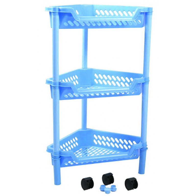 Этажерка угловая 3-яр Кс на колесиках голубой