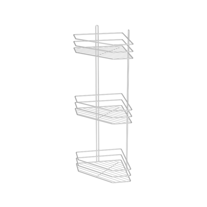 Поличка метал триярусна кутова 3-контура, настінна призначена для зберігання банного приладдя, предметів особистої гігієни і інших необхідних дрібниць, можна використати у ванні, на кухні, в передпокої, в дитячій або другом зручному місці. Поличка кріпиться до стіни за допомогою шурупів, на дні поличок розташовані отвори, які дозволяють стікати воді при попаданні на виріб. Кутова полиця зручна, компактна і містка.