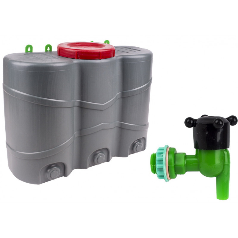 Умивальник 25л з кришкою виконаний у вигляді об'ємного прямокутника, компактний і зручний в застосуванні. У верхній частині знаходиться заливний отвір, який закривається гвинтовою кришкою, в нижній частині знаходиться отвір для зрізу і кріплення знімного крану, який є в комплекті. Велика шийка надає зручність під час процесу заповнення каністри водою.