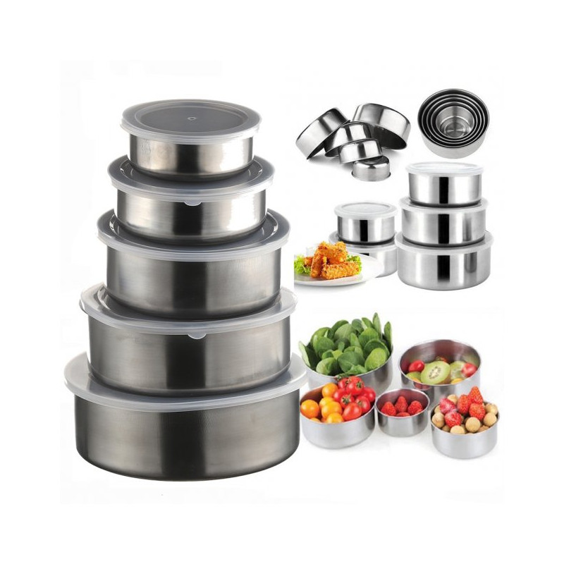 Набір складається з 5 штук круглих харчових контейнерів, які виготовлені з високоякісної нержавіючої сталі з харчовими пластиковими кришками. Всі матеріали нешкідливі для здоров'я, не змінюють смаку та запаху продуктів. Судочки використовуються для зберігання та перенесення продуктів або готових страв, вони легко миються та мають привабливий вигляд.