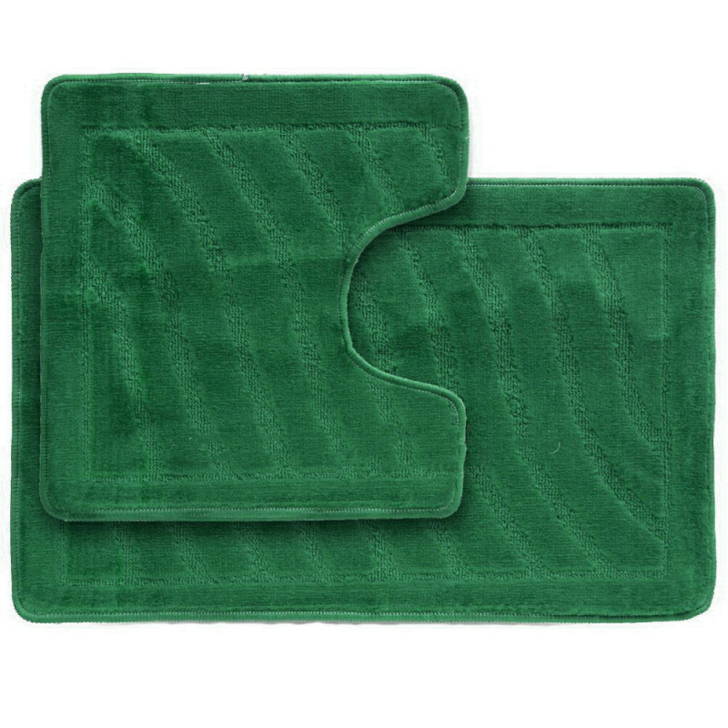 Набір килимків для ванної кімнати виконує не тільки декоративну функцію, а й вбирає вологу, і не дозволяє послизнутися на мокрій поверхні, виходячи з ванни або душової кабіни. Приміщення з плиткою на підлозі виглядає менш цікаво, якщо не доповнено помітними деталями. Бомбезний набір килимків стане саме таким елементом, який моментально перетворить Вашу ванну і туалетну кімнату. Комплект складається з прямокутного килимка для ванної та килимка з вирізом під унітаз. Килимки середньої жорсткості ворсу прикрашають рельєфні візерунки. Килимки виготовлені з якісного синтетичного матеріалу 100% поліестеру, основа прогумована, висота ворсу 11мм. Килимки можна пилососити і прати в пральній машині в делікатному режимі при температурі 30 ° C, вони стійкі до перепадів температури, не втрачають форму і колір, швидко висихають. Комплект килимків у ванну кімнату можна використовувати на підлозі з підігрівом.