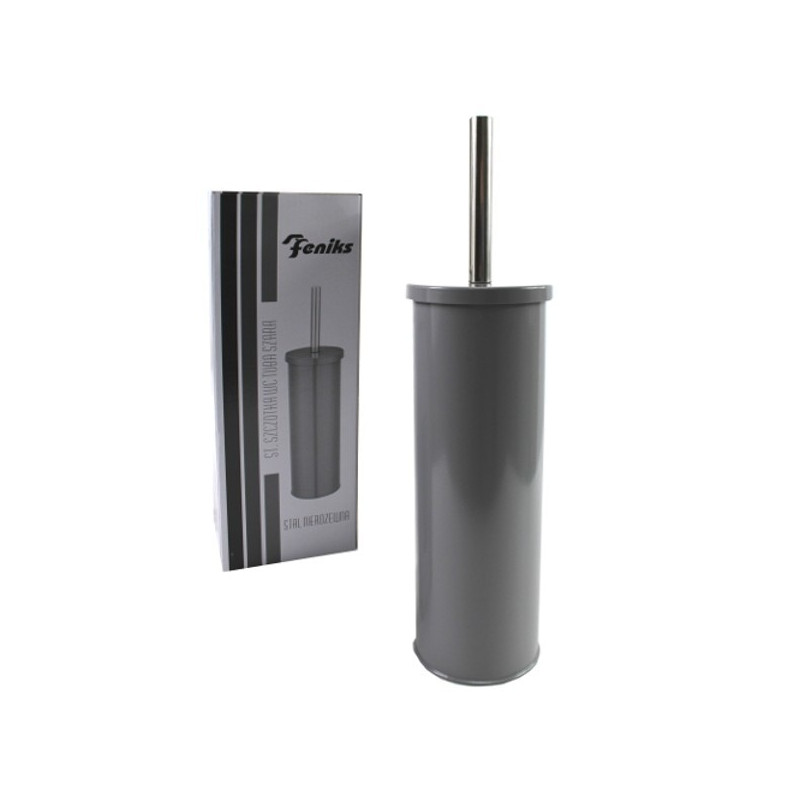 Туалетний комплект високий металевий йоржик і щітка середньої жорсткості, круглої форми у вигляді колби тубуса, призначений для чищення унітазу. Йорж для унітазу з підставкою виготовлений з високоякісної нержавіючої сталі. Даний туалетний комплект для унітазу підлогового типу.