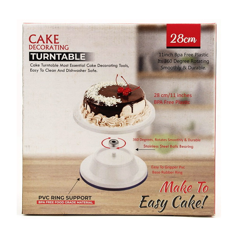 Поворотний столик для торта – чудовий кондитерський інвентар, який використовується для зручного розподілу крему або мастики, нанесення декору. Поворотний столик дозволяє кондитеру наносити візерунок або декор на випічку під потрібним кутом.