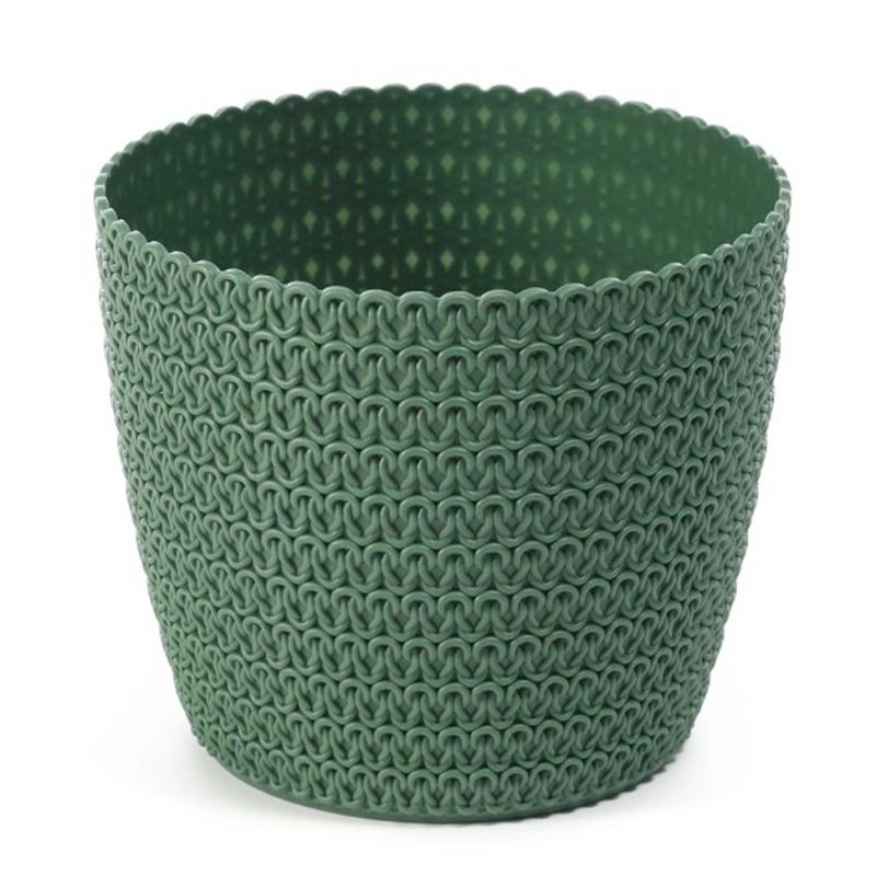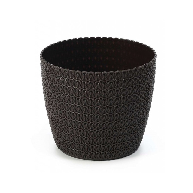 Вазон декорований під штучну в'язку та створює неповторний декоративний ефект для прикраси інтер'єру та демонстрації рослин. Декоративні вазони часто використовують як любителі кімнатних квітів та рослин, так і професійні флористи та фермери. Оригінальне кашпо для квітів служить декором, тому важливо, щоб воно відповідало загальному ансамблю приміщення. Класична форма горщика та популярний в'язаний візерунок ідеально вписується в кожен інтер'єр. Можна підібрати необхідне забарвлення виробу, так як асортимент його надзвичайно великий.