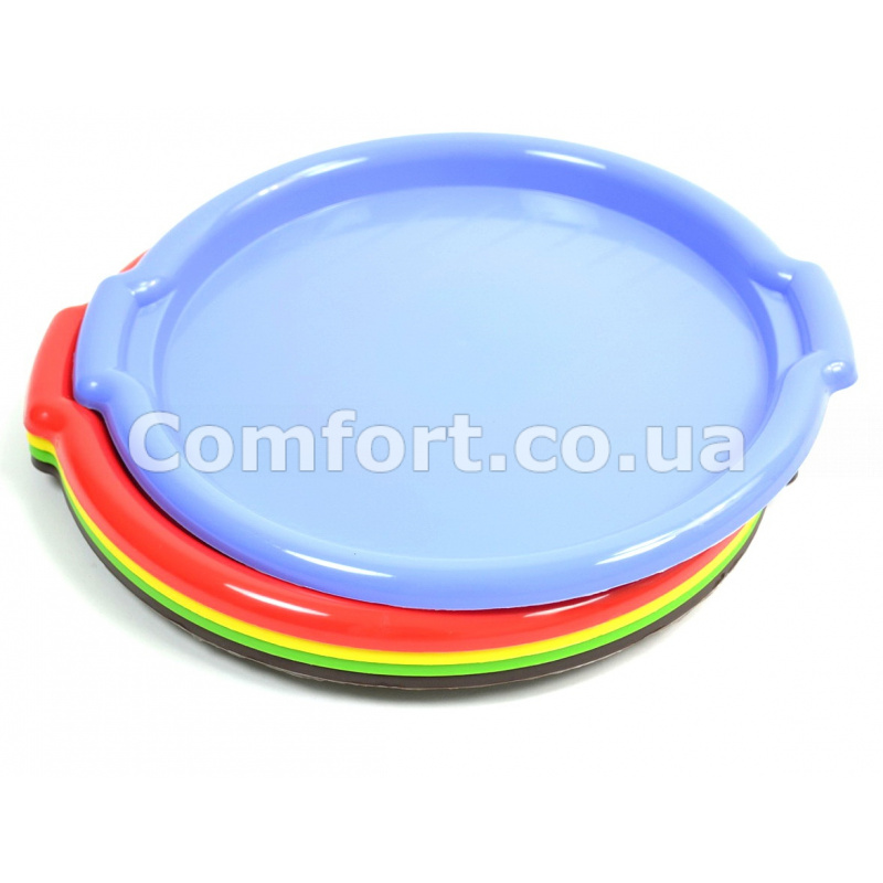Піднос круглий пластмасовий призначений для перенесення посуду, легкий і міцний, стане надійним помічником при сервіровці. Поднос не розіб'ється і не погнеться з часом, він термостійкий, і його легко мити, оснащений зручними ручками. Піднос виготовлений з кольорової пластмаси. Розміри: 37х2, 5см. Виробник: Україна