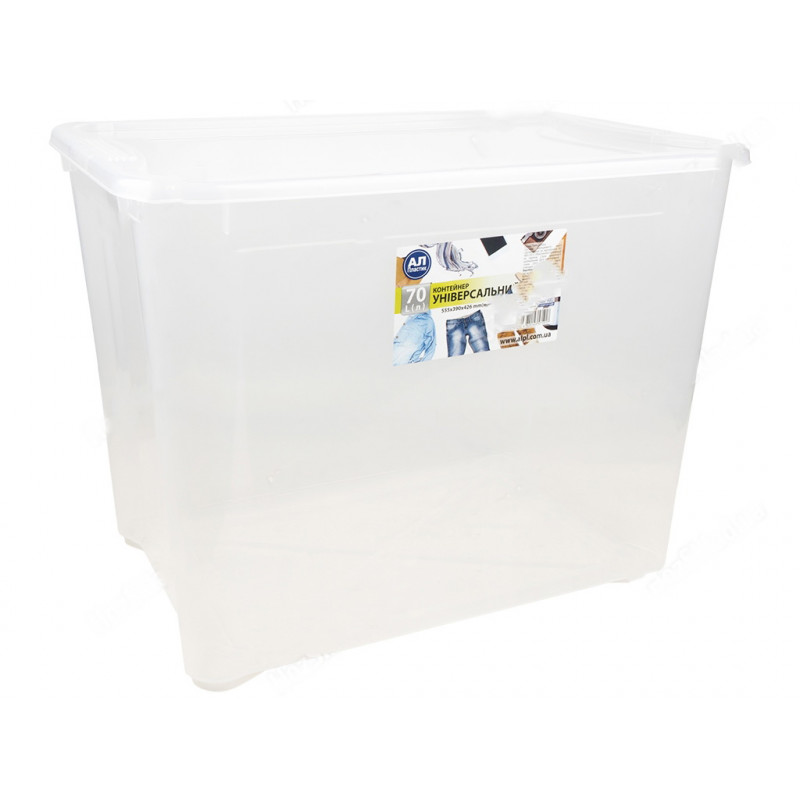 Контейнер прозорий 70л виготовлений з високоякісного, кольорового, харчового пластику, зручний та компактний, займає мінімум місця. Контейнер прямокутний з кришкою підходить для зберігання продуктів, речей, одягу, іграшок та інших предметів домашнього використання.