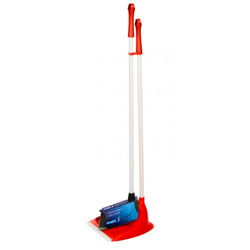 Совок забезпечений гумовою кромкою, що дозволяє ефективно змітати навіть найдрібніші частки пилу і інші забруднення. Довга ручка совка і щітки дозволяє проводити прибирання, не нахиляючись, що убереже спину від зайвої напруги. Також щітка з совком обладнані пластиковим кріпленням, яке скріплюють їх один з одним для зручного і компактного зберігання.