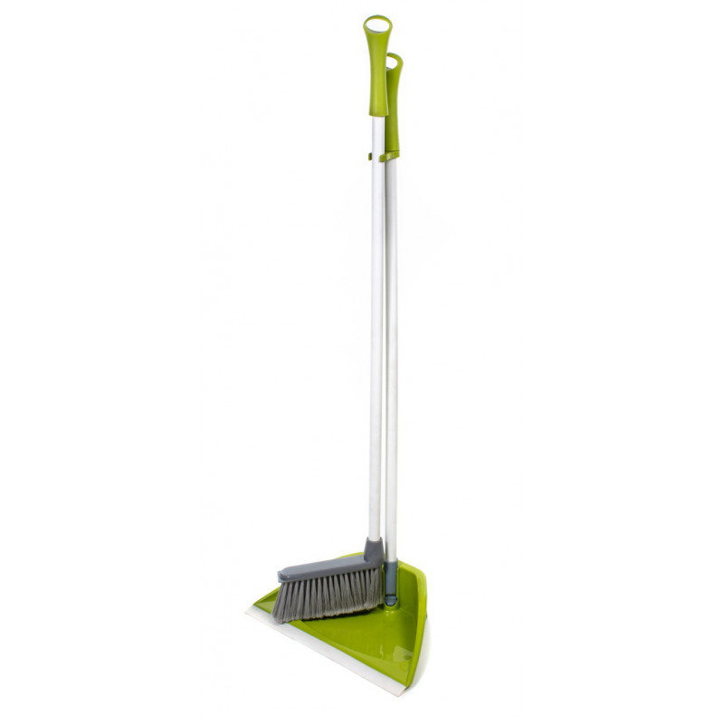 Совок забезпечений гумовою кромкою, що дозволяє ефективно змітати навіть найдрібніші частки пилу і інші забруднення. Довга ручка совка і щітки дозволяє проводити прибирання, не нахиляючись, що убереже спину від зайвої напруги. Також щітка з совком обладнані пластиковим кріпленням, яке скріплюють їх один з одним для зручного і компактного зберігання.