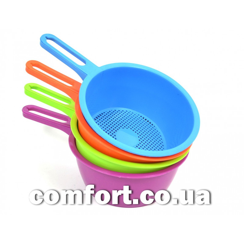Ковшик друшляк 1,5л Пагро з довгою ручкою пластмасовий, використовується на кухні при приготуванні їжі, для зливу рідини, зручно мити зелень, овочі, фрукти та ягоди. Довга ручка дозволяє зручно тримати повністю наповнений ковшик друшляк. Ковш друшляк практичний і компактний, на ручці є отвір для підвішування, що дозволяє економити місце при зберіганні. Поєднаний воєдино ковш і друшляк виготовлений з високоякісної, кольорової, харчової пластмаси. Необхідний посуд ковшик з перфорацією має стійку основу, його легко мити.