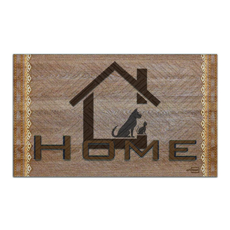 Килимок на гумовій основі з ворсовим покриттям використовується для декору, утеплення, а також він добре збирає бруд і вбирає вологу, призначений для очищення взуття, використовується всередині і зовні приміщень. Підлоговий килимок прямокутної форми, має підвищений рівень вологостійкості, захищає від холоду і ковзання на мокрій підлозі, легко чиститься і миється звичайною водою. Придверний гумовий килимок стійкий до температурних перепадів і не ковзає на вологій поверхні, забезпечуючи безпеку. Килимок з малюнком має гладкий, низький поліпропіленовий ворс приємний на дотик. Має презентабельний зовнішній вигляд за рахунок структурного тиснення ворсистого покриття, яке добре вловлює бруд.