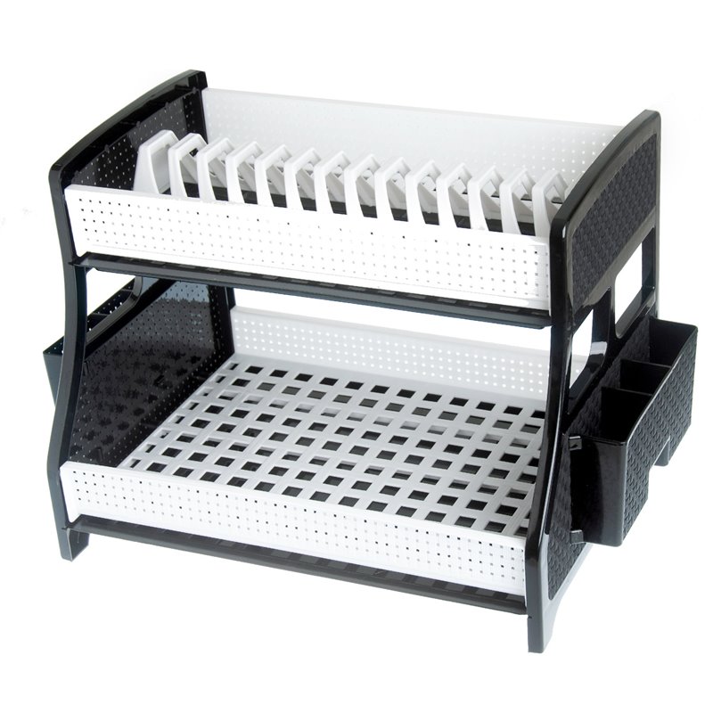 Сушарка для посуду 2-яр Плетінка два піддони у коробці чорно-білий
