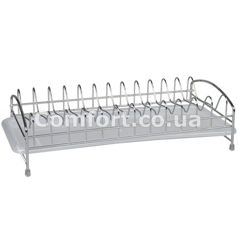 Сушарка для посуду потрібна для кожної хазяйки, призначена для сушки і зберігання посуду, зручна і компактна, істотно економить місце на кухні, можна розмістити на столі, в шафі або іншій зручній поверхні. Сушарка виготовлена з нержавіючої сталі, має відсіки для тарілок, нижній піддон легко виймається і миється при необхідності. Розміри: 41х19х11см.