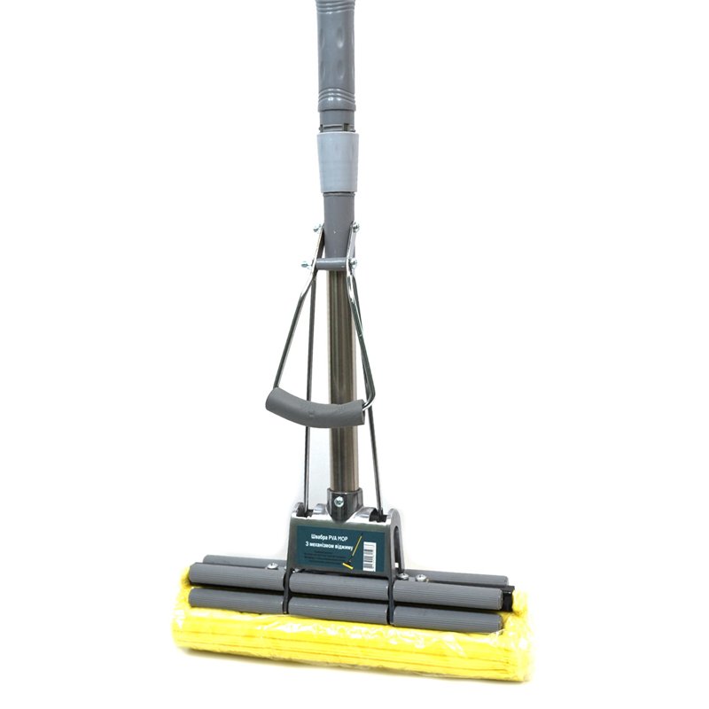 Губка моп добре видаляє забруднення, виготовлена з синтетичного матеріалу PVA. Додатковий антиковзаючий тримач на ручці швабри і на ручці віджимання дозволяє відчути максимальний комфорт при використанні швабри. На кінці ручки є спеціальна петля, завдяки якій швабру можна підвісити у будь-якому зручному місці. Ексклюзивна єврошвабра хром з гнутою телескопічною ручкою шикарної якості тільки у нас за дійсно доступною ціною! Використовуючи цю швабру з подвійним віджиманням для прибирання Ви отримаєте чудовий результат.