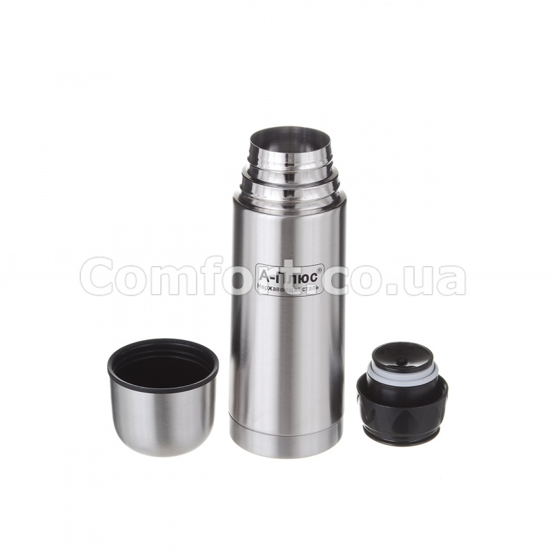 Термос металевий зручно використати в поході або на прогулянці. Корпус виготовлений з міцної нержавіючої сталі стійкої до механічних ушкоджень. Поверхня з дзеркальною поліровкою легко миється. Колба термоса виконана з нержавіючої сталі. Кришка, що герметично закривається, може використовуватися як чашка. Термос має зручний чохол з ручкою, для зручного транспортування. Об'єм 0,35л.