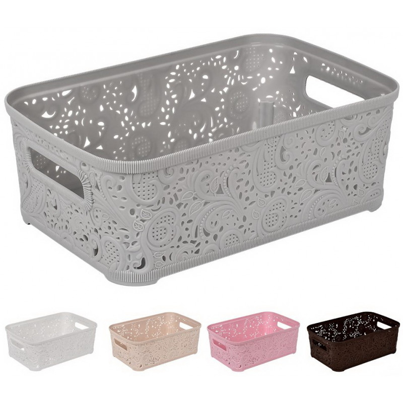 Дизайн кошику ажур для зберігання відрізняється яскравістю, оригінальністю має унікальний вид. Пластиковий кошик без кришки виконаний у вигляді ажурного візерунка. Органайзер для зберігання ажур без кришки має широкий асортимент кольорів. Корзина для зберігання ажур без кришки компактна, легка, міцна і містка, максимально підвищує рівень зручності, не вимагає особливого догляду. Кошик ажурний - стильний аксесуар для кожного будинку. Практична корзина ажур для зберігання потрібна в кожному будинку, вона не залишить Вас без уваги.