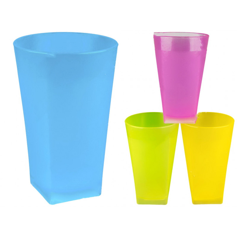 Яскраві кольори допоможуть підібрати склянки на будь-який смак і під будь-який інтер'єр, такі склянки знайдуть широке застосування на вашій кухні. Склянки складаються один в інший і не займають багато місця їх легко мити, швидко сохнуть. Рекомендується промити склянки миючим розчином перед першим застосуванням. Прозора пластикова склянка має необмежений термін експлуатації.