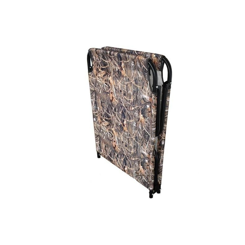 Розкладачка Камуфляж - важлива річ для відпочинку на природі, на риболовлі, в поході, в літніх дитячих таборах, пансіонаті і будинках відпочинку, а також для дачі або будинку, де виникає необхідність швидко організувати тимчасове, але комфортне місце для сну і відпочинку. Розкладачка - універсальні меблі для приміщення і вулиці і відмінне рішення для організації спального місця, що дозволяє значно заощадити простір. У складеному виді вона займає мало місця, з легкістю може поміститися в машину для транспортування, але при розкладанні трансформується в повноцінне спальне місце. На ній комфортно відпочиватиме як дитині, так і дорослій людині, незалежно від комплектації тіла і фізичних особливостей. Ви можете зберігати розкладну ліжко-розкладачку в складеному виді, поставивши її в затишному місці. Розкладачка надійна і довговічна, використовується скрізь, зручна при цьому проста в експлуатації, основа розкладачки зроблена з високоякісної металевої труби діаметром 25мм, забезпечує високу стабільність розкладачки. Простота конструкції, компактність і зручність в експлуатації, при цьому невисока ціна роблять класичну розкладачку незамінною. Комфортні розміри розкладачки забезпечать Вам приємний і тривалий відпочинок і сон. Габарити розкладачки 190х70х35см, в складеному положенні 95х70х10см, максимальне навантаження 110кг. Вес: 5кг. Виробник: Україна.