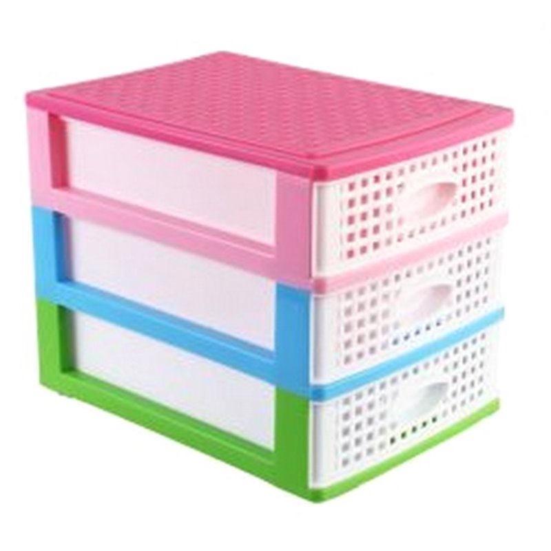 Комод міні плетінка має три прозорі висувні ящики, в які легко поміщаються усі необхідні дрібниці. Комод настільний використовується для зберігання офісного канцелярського приладдя, предметів для творчості, кольорових олівців, дитячих іграшок, предметів особистої гігієни, косметики, серветок і інших необхідних дрібниць.