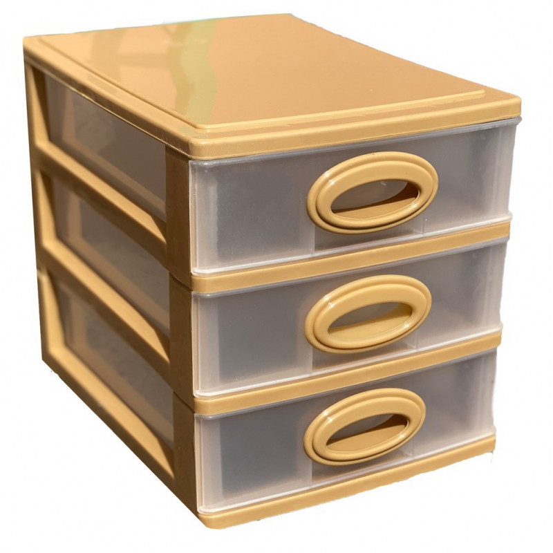 Комодик міні якість має три прозорі висувні ящики, в які легко поміщаються усі необхідні дрібниці. Комод настільний використовується для зберігання офісного канцелярського приладдя, предметів для творчості, кольорових олівців, дитячих іграшок, предметів особистої гігієни, косметики, серветок і інших необхідних дрібниць.