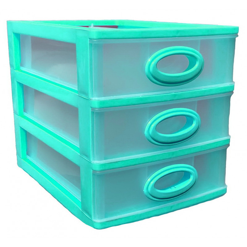 Комодик міні якість має три прозорі висувні ящики, в які легко поміщаються усі необхідні дрібниці. Комод настільний використовується для зберігання офісного канцелярського приладдя, предметів для творчості, кольорових олівців, дитячих іграшок, предметів особистої гігієни, косметики, серветок і інших необхідних дрібниць.