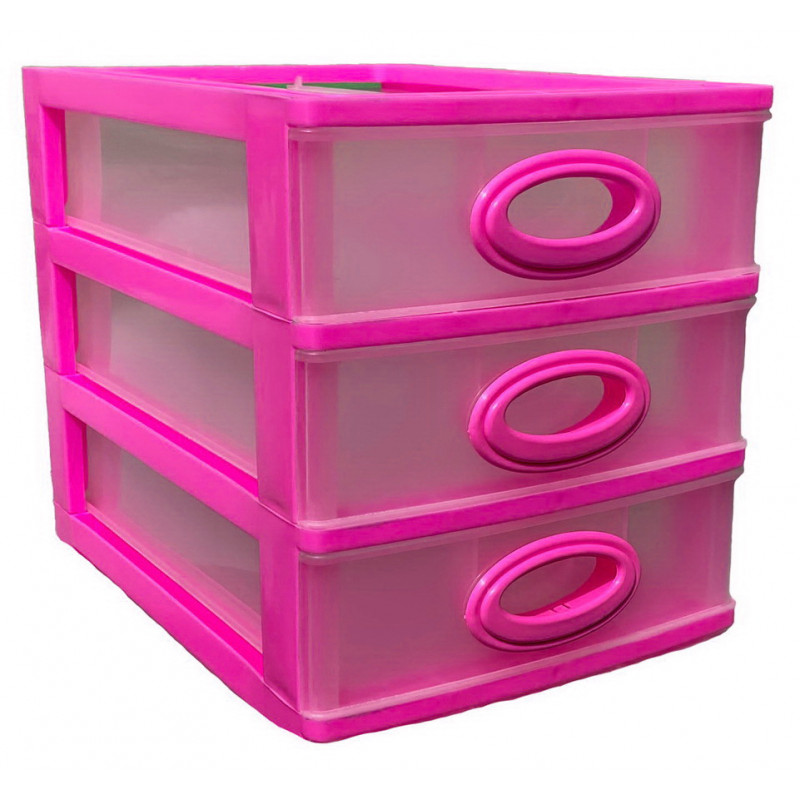 Комодик міні якість має три прозорі висувні ящики, в які легко поміщаються усі необхідні дрібниці. Комод настільний використовується для зберігання офісного канцелярського приладдя, предметів для творчості, кольорових олівців, дитячих іграшок, предметів особистої гігієни, косметики, серветок і інших необхідних дрібниць.