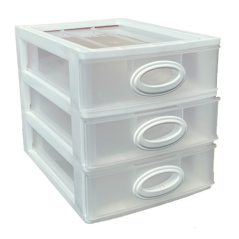Комодик міні якість має три прозорі висувні ящики, в які легко поміщаються усі необхідні дрібниці. Комод настільний використовується для зберігання офісного канцелярського приладдя, предметів для творчості, кольорових олівців, дитячих іграшок, предметів особистої гігієни, косметики, серветок і інших необхідних дрібниць.