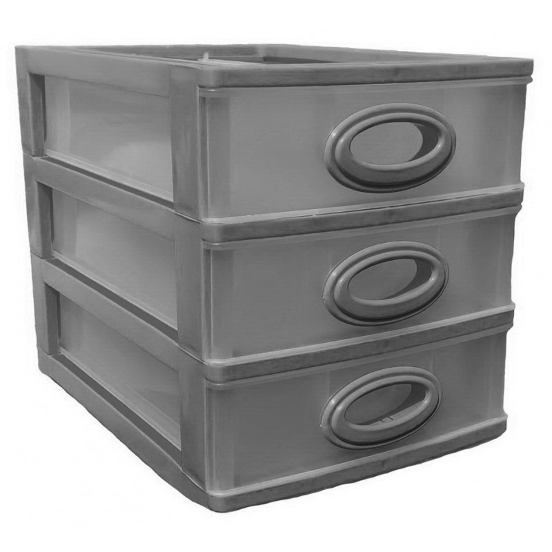 Комодик міні якість має три прозорі висувні ящики, в які легко поміщаються усі необхідні дрібниці. Комод настільний використовується для зберігання офісного канцелярського приладдя, предметів для творчості, кольорових олівців, дитячих іграшок, предметів особистої гігієни, косметики, серветок і інших необхідних дрібниць.