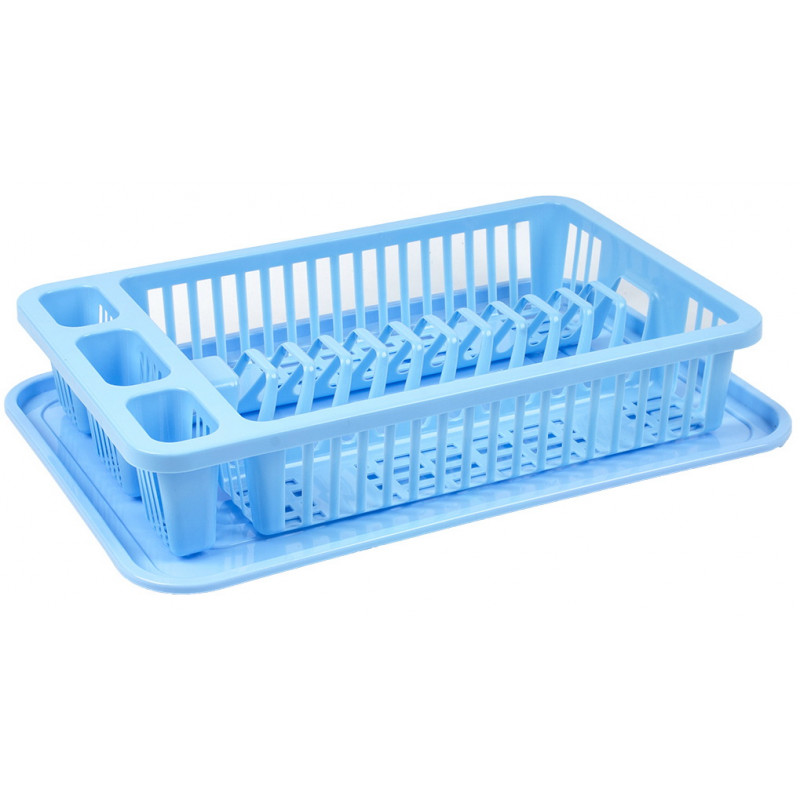 Сушарка для посуду пластмасова потрібна на кожній кухні, призначена для сушки і зберігання посуду, зручна і компактна, істотно економить місце на кухні, можна розмістити на столі, в шафі або іншій зручній поверхні. Сушарка виготовлена з кольорової пластмаси, має відсіки для тарілок і столових приладів, нижній піддон легко виймається і миється при необхідності.