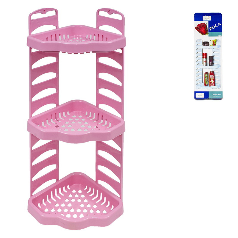 Відкрита кутова поличка допоможе упорядкувати потрібні речі, розташувавши їх з максимальною зручністю для щоденного використання. Брати необхідні предмети з відкритої полички легко і зручно. Пластмасова полиця кріпиться до стіни за допомогою шурупів, висоту поличок можна легко регулювати, на дні розташовані отвори, які дозволяють стікати воді при попаданні на виріб. Кутова полиця практична, компактна і містка, складається з трьох ярусів, стійка до температурних змін. Полиця етажерка виготовлена з кольорової якісної пластмаси, яка упродовж довгих років експлуатації забезпечує міцність і надійність цього аксесуара. Кутова поличка легка, вологостійка, надійна, практична і функціональна. Завдяки своєму розміру і універсальному дизайну поличка буде гармонійною у будь-якому приміщенні і ідеально впишеться в сучасний інтер'єр.