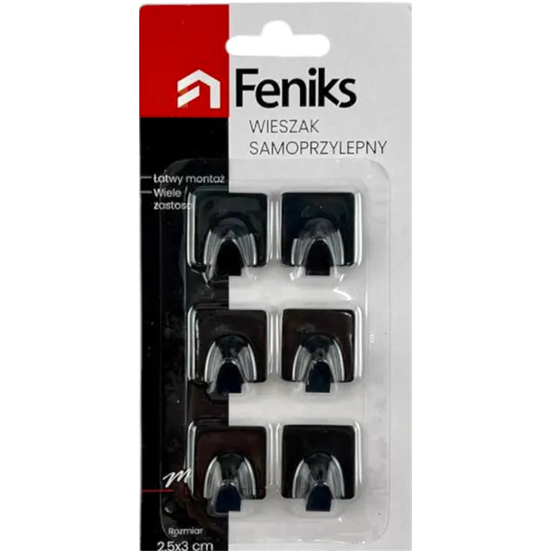 Гачок 1уп-6шт на самоклейці металевий 74303 на блістері Квадрат чорний