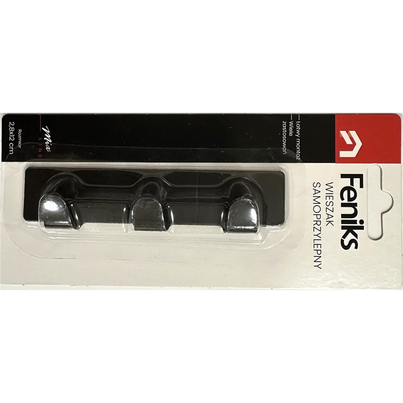 Вішалка самоклеюча на планці 3 гачка 74273 на блістері чорний