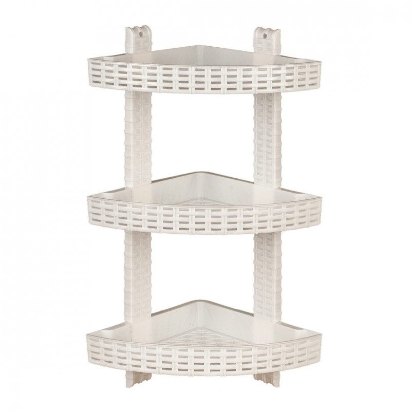 Поличка плетінка триярусна пластмасова настінна, кутова, ідеальна для зберігання, використовується в різних областях домашнього господарства у ванні, в душовій, на кухні, в передпокої, в дитячій кімнаті і у будь-кому другом необхідному місці. Кутова поличка економить місце у ванній кімнаті, і робить легкодоступним банне приладдя, засоби особистої гігієни, шампунь, гель для душу, лосьйон, крем, дозатор мила, склянку із зубними щітками, бритву, мочалку і багато інших необхідних дрібниць. Відкрита кутова поличка допоможе упорядкувати потрібні речі, розташувавши їх з максимальною зручністю для щоденного використання. Брати необхідні предмети з відкритої полички легко і зручно. Пластмасова полиця кріпиться до стіни за допомогою шурупів, висоту поличок можна легко регулювати, на дні розташовані отвори, які дозволяють стікати воді при попаданні на виріб. Кутова полиця для ванни практична, компактна і містка, складається з трьох ярусів, стійка до температурних змін. Полиця етажерка виготовлена з кольорової якісної пластмаси, яка упродовж довгих років експлуатації забезпечує міцність і надійність цього аксесуара, декорована під штучне плетіння. Кутова потрійна поличка для душа легка, вологостійка, надійна, практична і функціональна. Завдяки своєму розміру і універсальному дизайну поличка буде гармонійною у будь-якому приміщенні і ідеально впишеться в сучасний інтер'єр.
