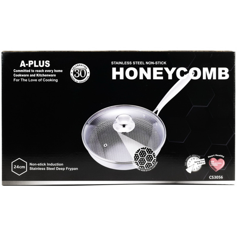 Сковорода 3056CS з антипригарним покриттям HONEYCOMB 24см глибока з кришкою в коробці