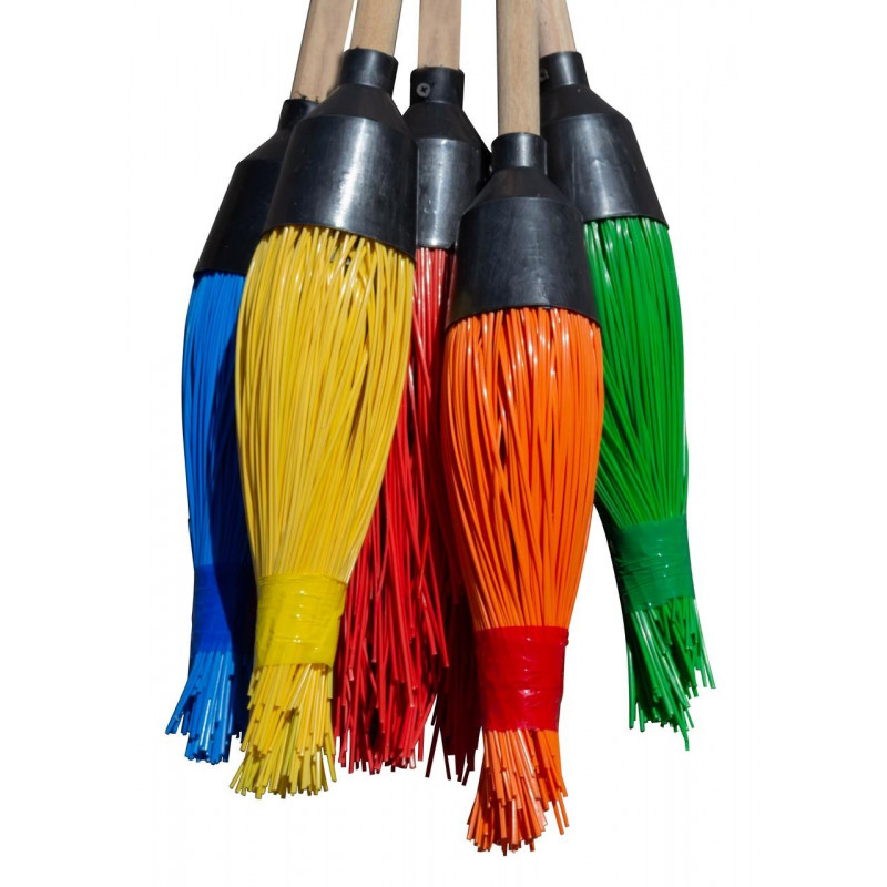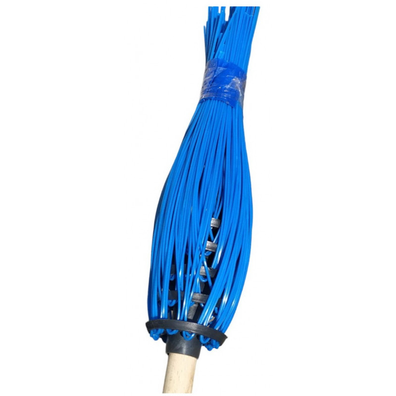 Мітла пластикова кругла 5-рядна з дерев'яним держаком