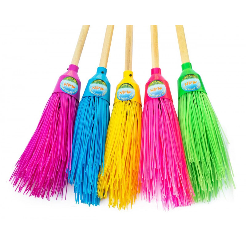 Мітла пластикова кругла MAN 5-рядна з дерев'яним держаком