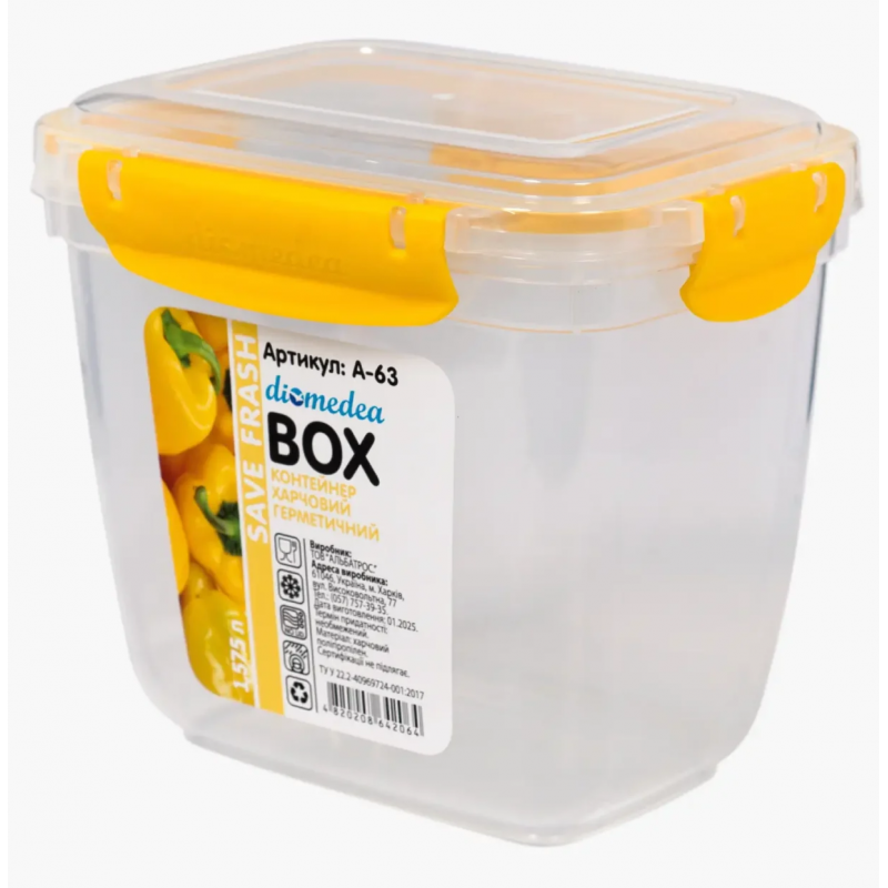 Контейнер прозорий 1,575л з герметичною кришкою, виготовлений з високоякісної харчової пластмаси, яка може контактувати з їжею, абсолютно безпечна для здоров'я, не містить шкідливих речовин, не вбирає сторонні запахи і не має свого. Ємність для продуктів призначена для зберігання і транспортування свіжих і заморожених продуктів, ягід, фруктів, овочів, а також зручно використовувати для розігріву їжі в мікрохвильовій печі. Бокси контейнери з харчового пластика з засувками незамінні для тих, хто любить відпочивати на природі. Ємність комплектується кришкою, яка щільно закривається, це перешкоджає випадковому відкриттю кришки.