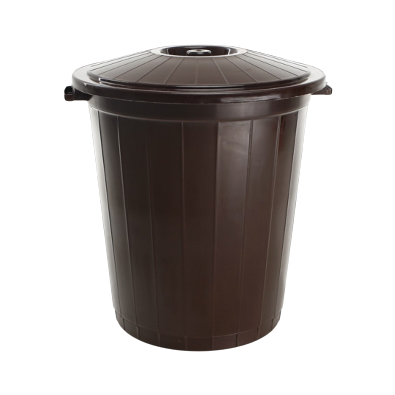 Бак з кришкою, потрібний в домашньому господарстві, можна використати для зберігання води, сміття або білизни, виготовлений з кольорової пластмаси.