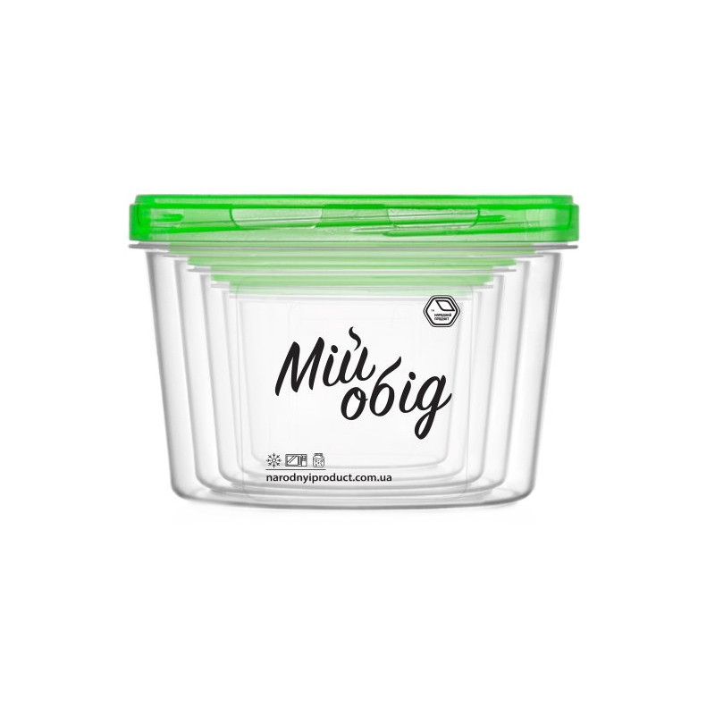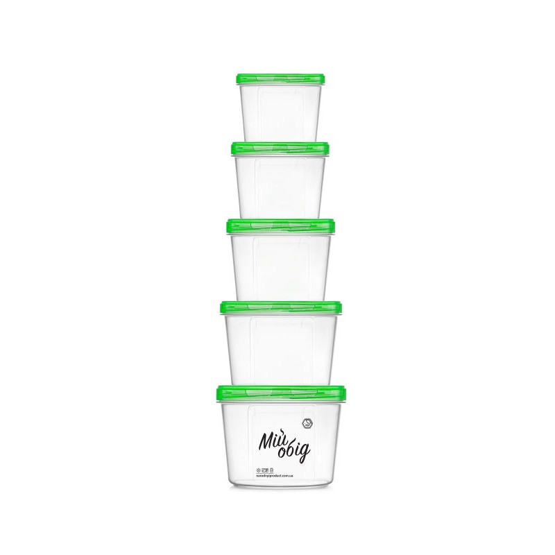 Судок круглий НП набір №82з 0,2+0,3+0,5+0,7+1л зелена кришка