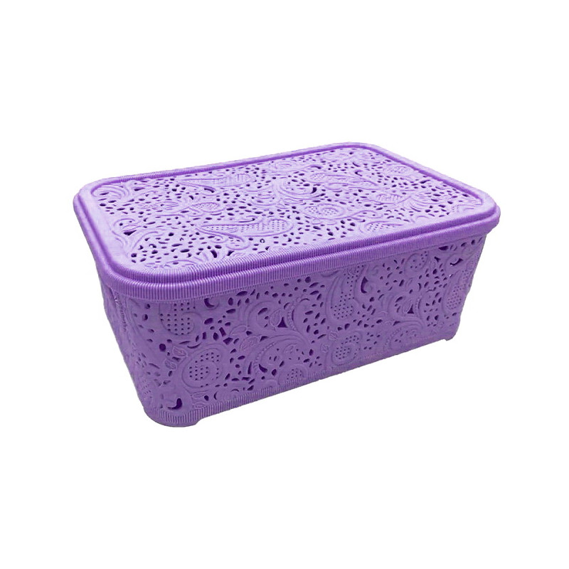 Кошик ажур укомплектована кришкою, яка захищає речі від пилу і бруду. Дизайн кошику ажур для зберігання відрізняється яскравістю, оригінальністю має унікальний вид. Пластиковий кошик з кришкою виконаний у вигляді ажурного візерунка. Органайзер для зберігання ажур з кришкою має широкий асортимент кольорів. Корзина для зберігання ажур з кришкою компактна, легка, міцна і містка, максимально підвищує рівень зручності, не вимагає особливого догляду.