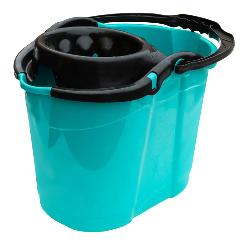 Відро для швабри з віджимом 14л з насадкою виготовлене з міцного, якісного, кольорового пластику. Універсальне відро може стати вирішенням багатьох завдань, його застосовують у домашньому господарстві або для прибирання. Відро з насадкою овальної форми, має два носики та два поглиблення з двох сторін для зручного переливання води з відра. Відро під швабру комплектується знімним віджимом насадкою для мопа. Пластикове відро з віджимом для мотузяної швабри мопа не вимагає особливого догляду і легко миється, його можна використовувати з будь-якою шваброю.