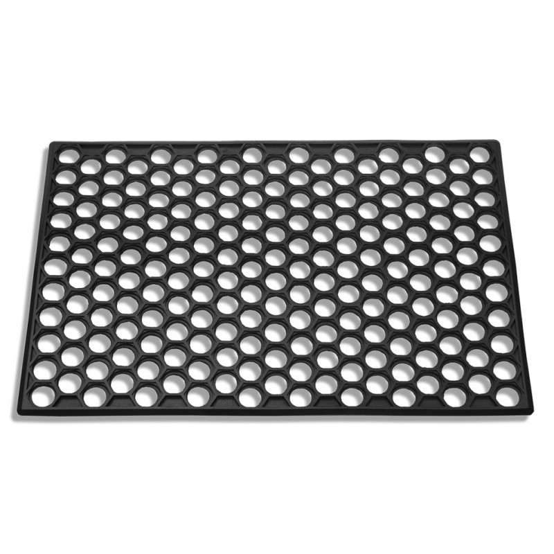 Килимок гумовий соти К-34м прямокутної форми, призначений для використання всередині і зовні приміщення, а також для захисту від бруду і снігу. Прогумована основа надійно утримує килимок на будь-якій поверхні, будь то паркет, ламінат, керамічна плитка або лінолеум, при цьому, не дряпаючи і не пошкоджуючи її. Завдяки тому, що килимок соти не ковзає по поверхні, його можна використовувати на кухні в кафе, на автомийці і на заводі біля верстатів. Гумовий килимок виготовлений з гуми стійкої до зносу і атмосферних впливів, не твердне при низьких температурах і не ковзає на вологій поверхні, тому може використовуватися в місцях з жорсткими умовами експлуатації і інтенсивним потоком людей. Купуючи придверний килимок або килимок в передпокій, Ви заощадити час на прибирання, його швидко і легко мити. При правильних умовах експлуатації гумовий килимок соти буде довго служити, не змінюючи зовнішній вигляд. Такий килимок найбільш якісний і довговічний, експлуатується круглий рік. Розміри: 60х40х0,8см. Виробник: Україна.