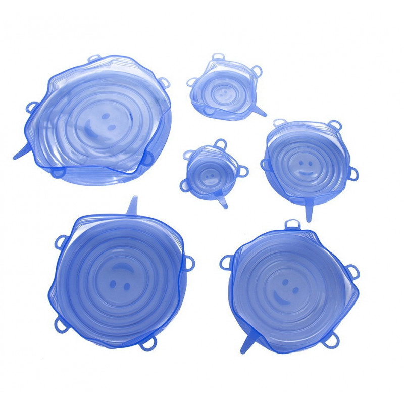Зручні універсальні силіконові кришечки використовують для будь-яких ємностей. За допомогою силіконових кришечок можна герметично закривати будь-які каструлі, чашки, тарілки, склянки або контейнери з їжею. Кришки легко одягаються, щільно прилягають і утримують рідини усередині місткості. Силіконові кришки виготовлені з екологічно чистого матеріалу і прослужать довгі роки. Силіконова кришка легко миється і підходить для усіх видів посуду. Набор складається з 6 штук силіконових кришечок різного діаметру. Розміри: 7см, 10см, 12см, 14см, 16см, 20см.