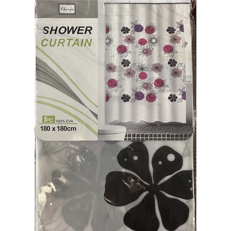 Штора 60086 силікон 180х180 Квіти чорні+круги