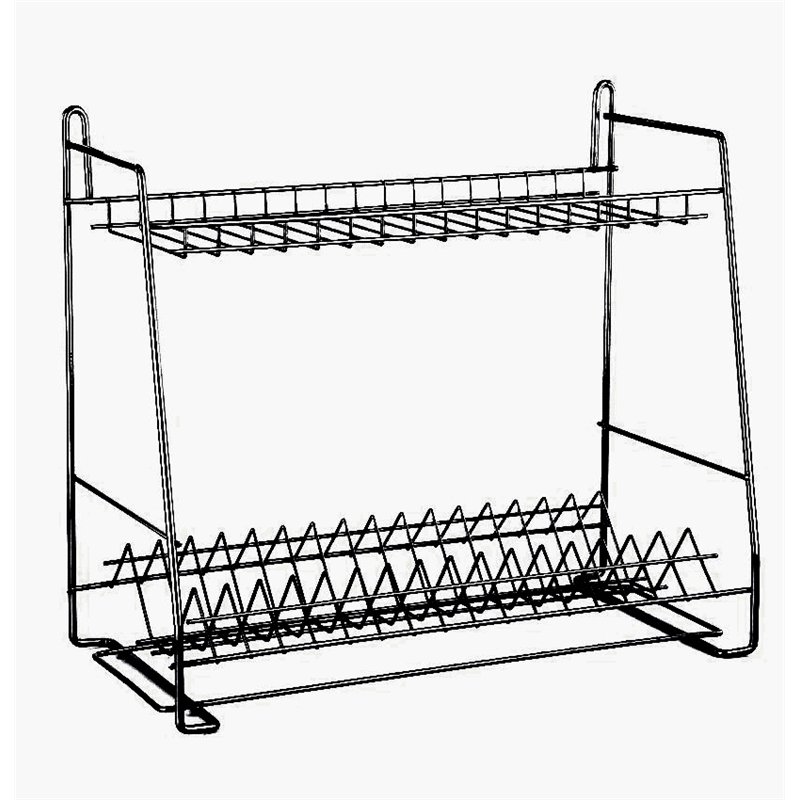 Сушарка для посуду потрібна для кожної господині, призначена для сушки і зберігання посуду. Сушарка для посуду двох'ярусна металева, передбачено кріплення на стіну, зручна і компактна, використовується для сушки тарілок, чашок, склянок, столових приладів. Така сушарка для посуду істотно економить місце на кухні або на дачі, її можна розмістити на столі, в шафі або іншій зручній поверхні.